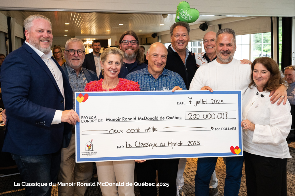 Le 7 juillet dernier, la Classique du Manoir de Québec a su briller malgré la météo capricieuse. Même sans golf, la chaleur humaine était bien présente : grâce à nos partenaires et à notre belle communauté, une somme exceptionnelle de 200 000 $ a été amassée pour offrir répit, réconfort et soutien aux familles qui séjournent chez nous.